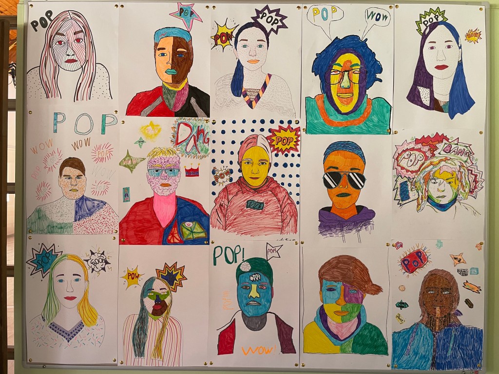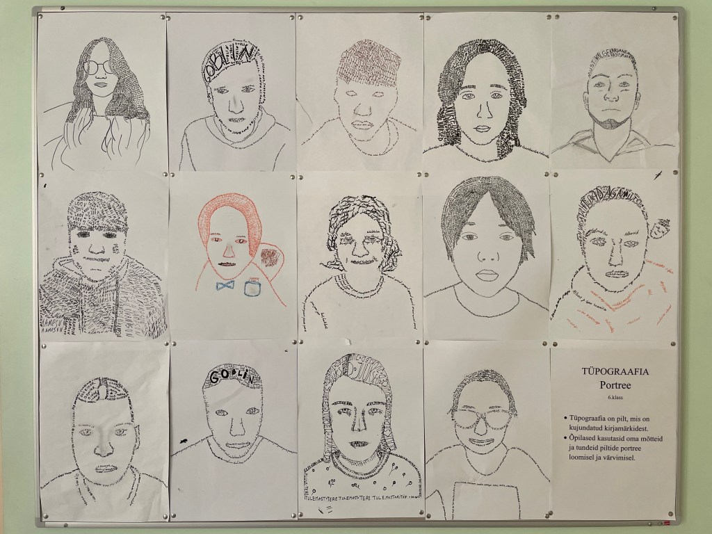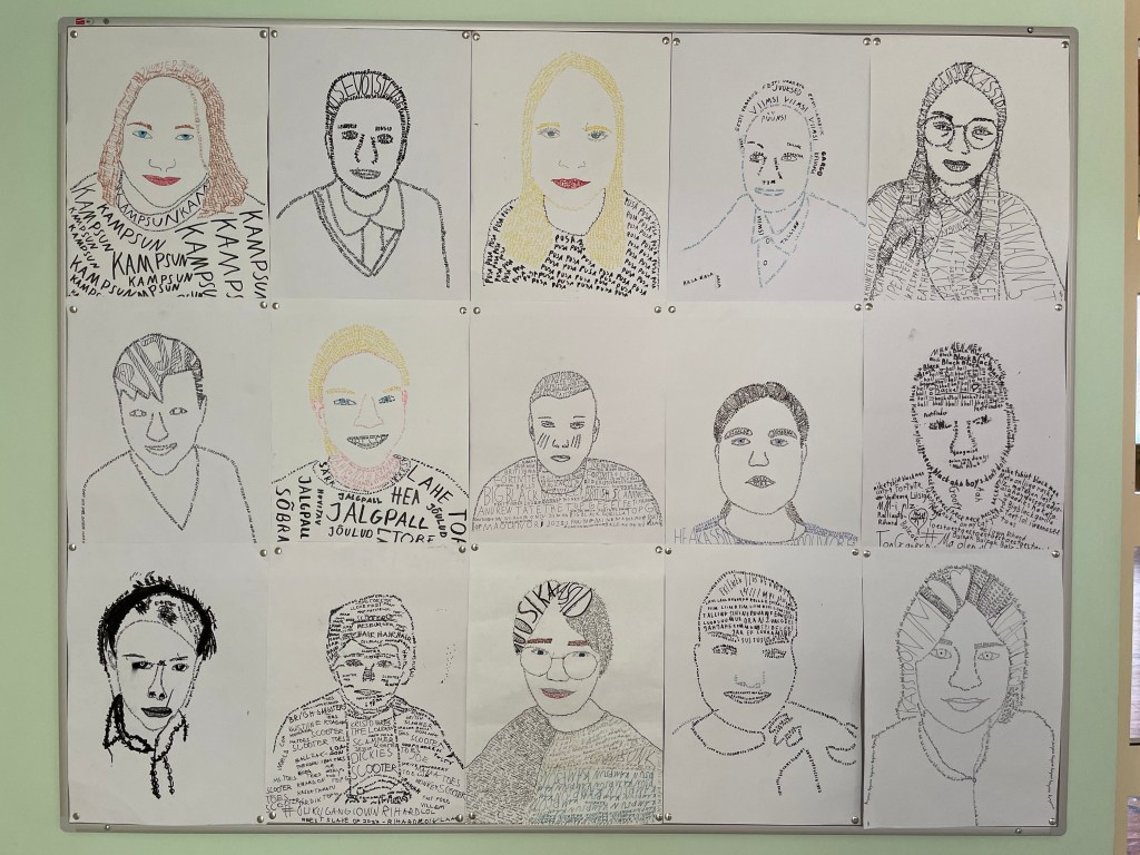 Antud töö puhul kasutasid 6. klassi õpilased oma mõtteid ja tundeid portree loomisel ja värvimisel. Neid juhendas õp Mari-Ann Mardo.