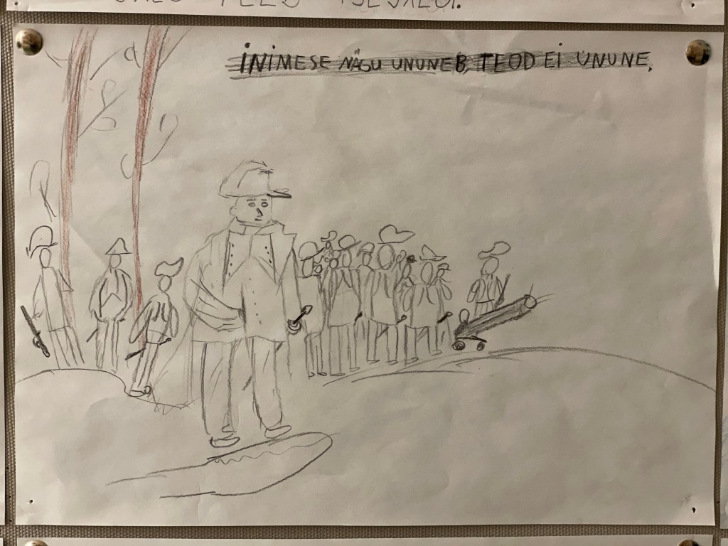 Eesti kuul ehk veebruaris otsisid 7.–8. klassi õpilased omale lemmik vanasõna ning pidid vastavalt vanasõna mõttele või sisule selle joonistama paberile. Õpilasi juhendas õp Mari-Ann Mardo.
